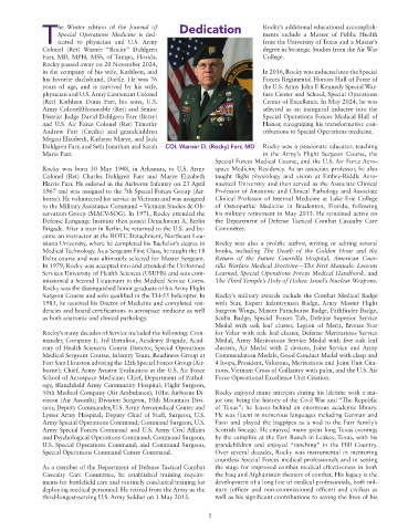 Casualty Care Committee, he established training require- the Iraq and Afghanistan theaters of combat. His legacy is the