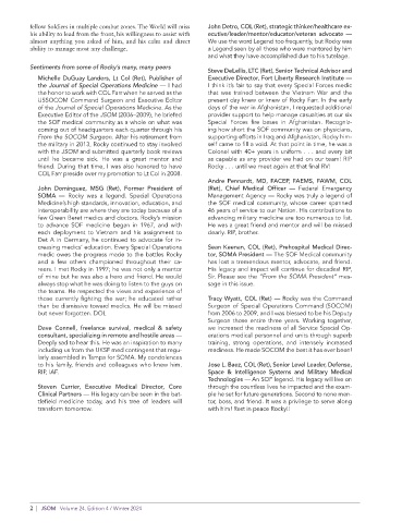 than be dismissive toward medics. He will be missed Surgeon of Special Operations Command (SOCOM)
