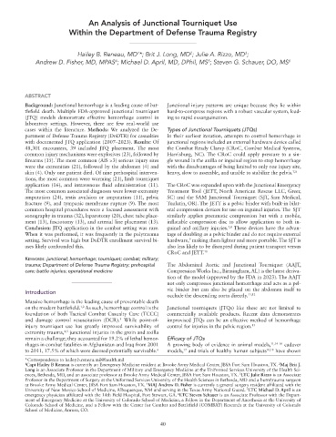 cases within the literature. Methods: We analyzed the De- Types of Junctional Tourniquets (JTQs)