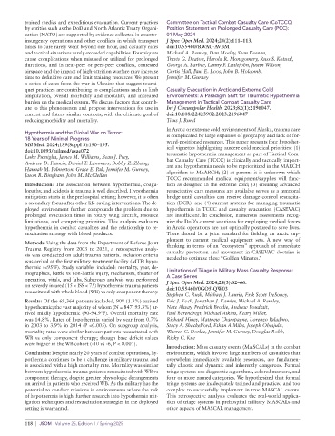 hypothermia in combat casualties and the relationship to re- in Arctic operations are not optimally postured to save lives.
