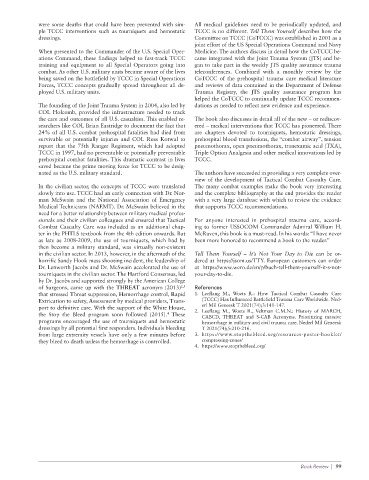 In the civilian sector, the concepts of TCCC were translated The many combat examples make the book very interesting