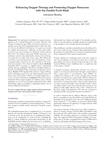 During mass casualties and operational medicine, oxygen (O ) Hornu Hospital. 11–14 The DTM is an innovative solution that