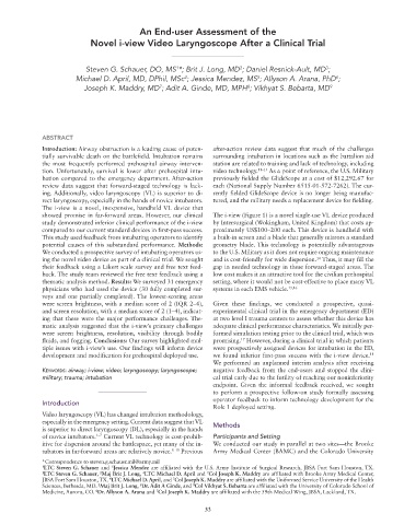 tion. Unfortunately, survival is lower after prehospital intu- video technology. 11–13 As a point of reference, the U.S. Military