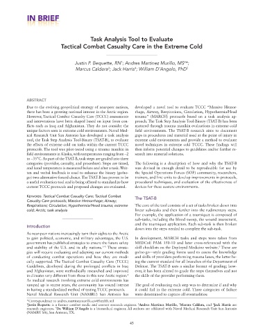 ical Research Unit San Antonio has developed a task analysis gaps in procedures and material used at the point of injury in