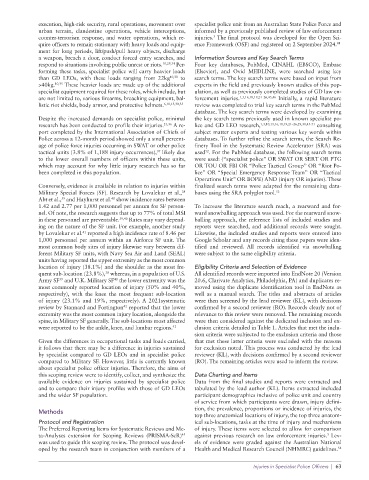 available evidence on injuries sustained by specialist police Data from the final studies and reports were extracted and