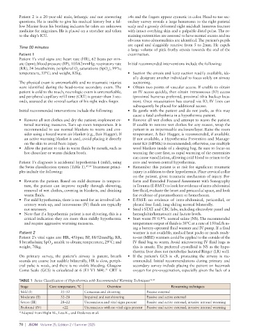8 breaths/min; SpO , unable to obtain; temperature, 29°C; and IV fluid bag to warm. Avoid microwaving IV fluid bags as