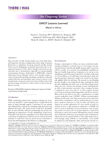care surgeon affiliated with Ragged Edge Solutions and the U.S. Air Force Ground Surgical Teams. Ricky M. Ditzel Jr. is a medical student affili-