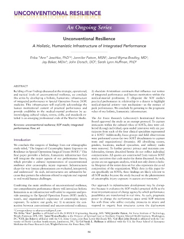 Keywords: unconventional resilience; SOF medic; integrated intricacies within the cultural ethos of SOSTs, data were col-