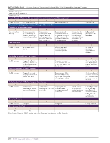 SUPPLEMENTAL TABLE 1 Objective Structured Assessment of Technical Skills (OSATS) Adjusted for Ultrasound Procedure
