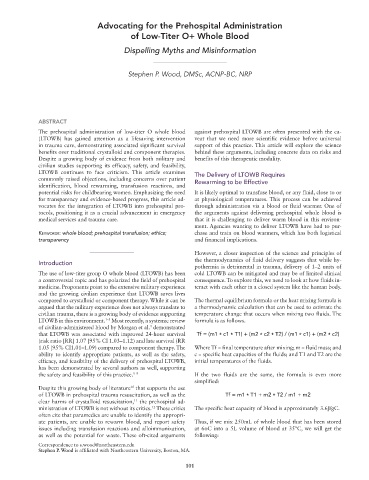 vocates for the integration of LTOWB into prehospital pro- through administration via a blood or fluid warmer. One of