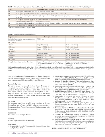 TABLE 4 World Health Organization – Informal Working Groups on Echinococcosis (WHO-IWGE) Classification of the Hydatid Cyst 3