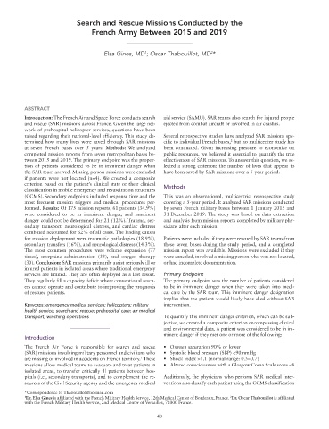 Introduction: The French Air and Space Force conducts search aid service (SAMU). SAR teams also search for injured people