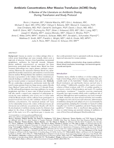 tal. We will enroll participants receiving antibiotics for wound ceiving any volume of blood products, and nearly 3% reaching