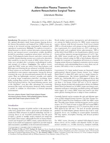 citative and Surgical Care (ARSC) teams, contain the bare min- For ARSC teams, choosing an optimal field-adapted plasma