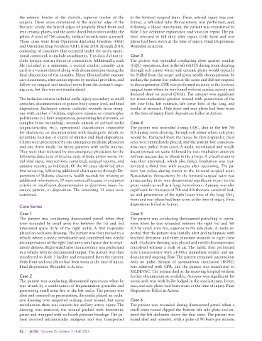 following data: type of injuries, type of body armor worn, ini- without success due to blood in the airway. A cricothyrotomy