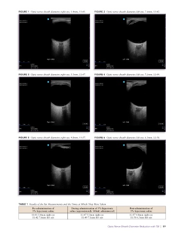 FIGURE 1 Optic nerve sheath diameter, right eye, 5.4mm, 11:41. FIGURE 2 Optic nerve sheath diameter, left eye, 7.6mm, 11:42.
