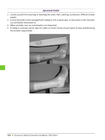 2. A sprained ankle is best managed with taping (1 inch surgical tape, or duct tape) so the Operator