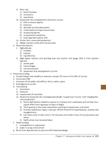 iv) Parachute suspension for prolonged period (aka “Suspension Trauma” and “Hanging Har-