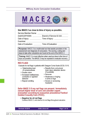 Military Acute Concussion Evaluation 224 n Pararescue Medical Operations Handbook / 8th Edition