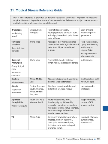 tropical diseases is beyond the scope of rescue medicine. Reliance on subject matter experts