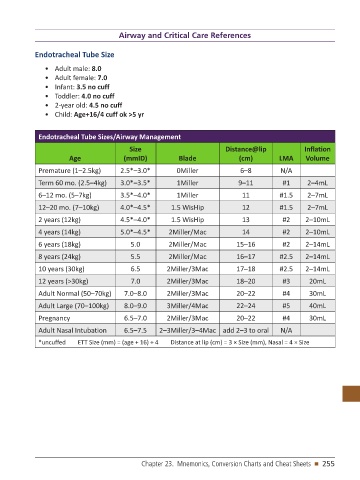 *uncuffed ETT Size (mm) = (age + 16) ÷ 4 Distance at lip (cm) = 3 × Size (mm), Nasal = 4 × Size