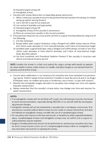• Surgical cricothyroidotomies should not be performed on unconscious casualties who have