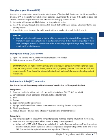 • Keep a 6 inch piece of bougie with the NPAs to ream out the airway in blast patients PRN.