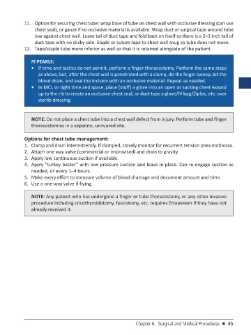 11. Option for securing chest tube: wrap base of tube on chest wall with occlusive dressing (can use