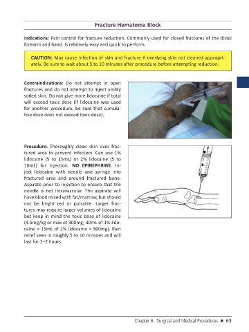 Indications: Pain control for fracture reduction. Commonly used for closed fractures of the distal