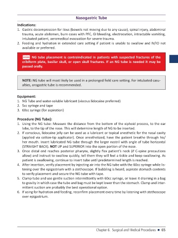 NOTE: NG tube will most likely be used in a prolonged field care setting. For intubated casu-