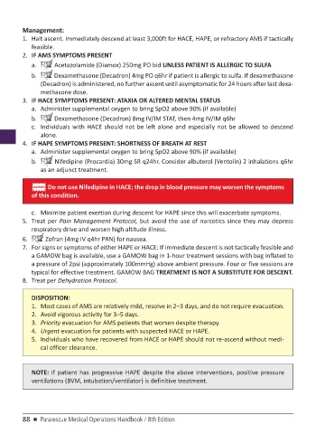 7. For signs or symptoms of either HAPE or HACE: If immediate descent is not tactically feasible and