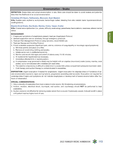 vere envenomation (systemic signs and symptoms, progressive ascending edema) exists. Evacuation not required for