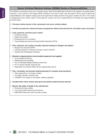 SECTION 1 The SEMA is customarily known as a company senior medic and traditionally functions in the capacity of a squad leader.