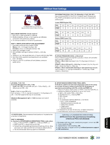 pH GOAL: 7.30–7.45 B. SPONTANEOUS BREATHING TRIAL (SBT):