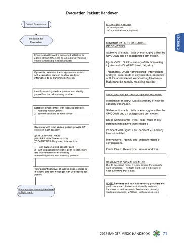 Evacuation Patient Handover SECTION 2 2022 RANGER MEDIC HANDBOOK 71