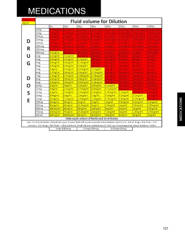 solution; 1ml drug + 9ml fluid = 10ml solution). Small volume medications (1-2ml) are inconsequential above dilutions >50ml