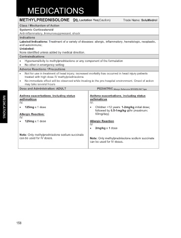 METHYLPREDNISOLONE Lactation Yes(Caution) Trade Name: SoluMedrol