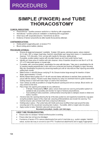 • Make incision in skin/SQ tissue overlying 5 th rib. Ensure incision large enough for insertion of tube/