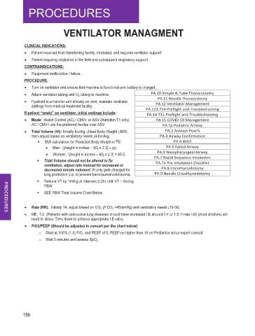 • Tidal Volume (Vt): Initially 6cc/kg, (Ideal Body Weight (IBW) PA.2 Airways Pearls