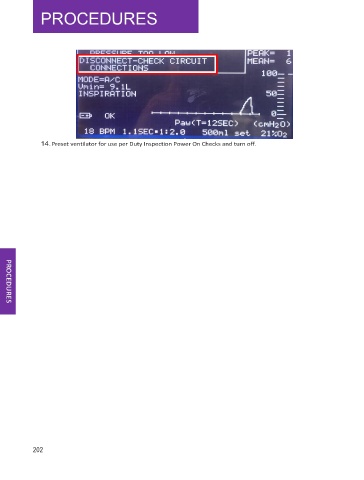 14. Preset ventilator for use per Duty Inspection Power On Checks and turn off. 202