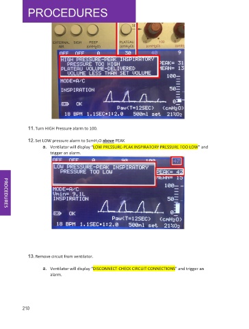 12.Set LOW pressure alarm to 5cmH 2 O above PEAK