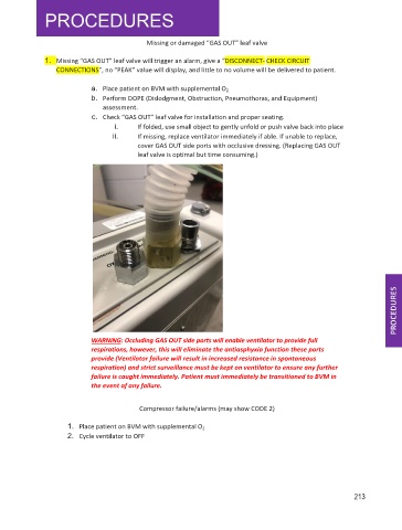 1. Missing “GAS OUT” leaf valve will trigger an alarm, give a “DISCONNECT- CHECK CIRCUIT
