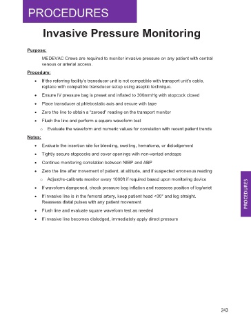 MEDEVAC Crews are required to monitor invasive pressure on any patient with central