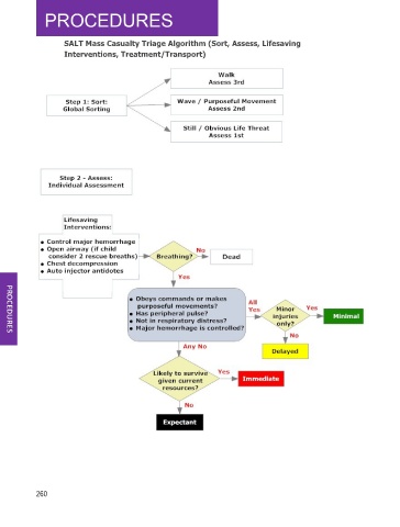 SALT Mass Casualty Triage Algorithm (Sort, Assess, Lifesaving Interventions, Treatment/Transport) 260