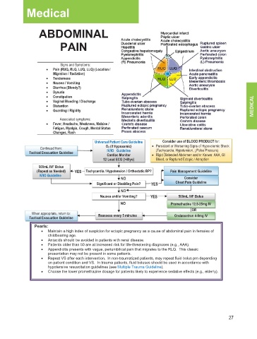 • Maintain a high index of suspicion for ectopic pregnancy as a cause of abdominal pain in females of