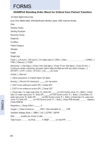 EXAMPLE Standing Order Sheet for Critical Care Patient Transfers