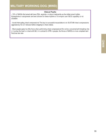 or injuring the heart or chest with BLS. In contrast to CPR in people, the thorax of MWDs is more compliant and